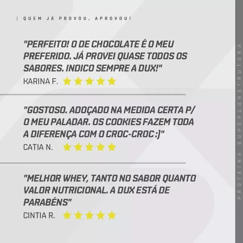 O Whey Protein Concentrado DUX® possui um perfil nutricional completo e um sabor real, ideal para ser consumido pré/pós treinos, como um snack prático, ou em suas receitas.